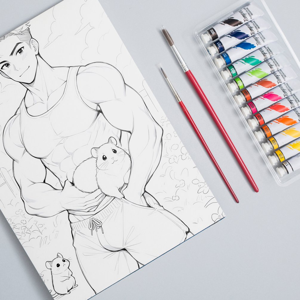This adult coloring book offers 35 exclusive illustrations filled with charm, sensuality, and play. Tenderness meets exposed skin, desire blooms in the details, and masculine beauty teases the eye—accompanied by loyal, joyful companions. Each page invites you to slow down, explore, and let your colors tell a story of pleasure and presence. 🎨💦